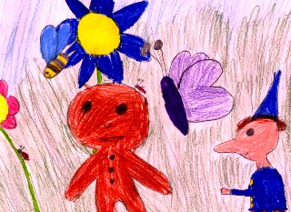 Zuerst suchte Nico ein paar Stöcke zusammen, dann suchte er zwei lange, feste Gräser und band damit die Stöcke zusammen. Er nahm einen dünnen, langen und einen dünnen, kurzen Stock. Da fand Nico ein Stück Taschentuch und ein Stück Draht. Daraus bastelte Nico ein Segel. Er sprang auf das Floß und los ging die wilde Fahrt. Zuerst trieb das Floß ganz gemütlich, doch dann hörte er plötzlich ein Rauschen: ein Wasserfall. Und schon stürzte Nico in die Tiefe. Er fiel ins Wasser und paddelte um sein Leben. Da kam die Rettung: eine Möwe. Sie war eine gutmütige Möwe und deshalb stürzte sie ins Wasser und rettete das Brotmännlein. Sie flog mit ihm in den Park. Nico sagte: „Danke, dass du mich gerettet hast." „Bitte, bitte, keine Ursache." Von da an beschlossen sie, zusammen Abenteuer zu erleben.