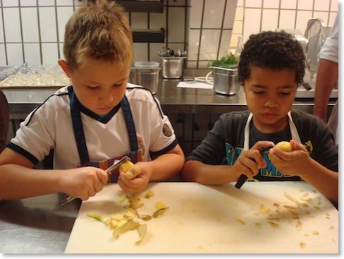Dort angekommen wurden wir sehr freundlich von den Chefköchen Herr Hammel und Herr Rahn begrüßt. Sie erklärten uns kurz unsere Aufgaben und schon schnippelten, schnitten und putzen wir los.