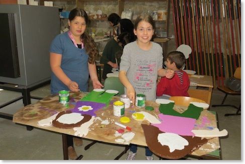 Die Zweitklässler gestalten fleißig Buchstaben für das Schullogo.