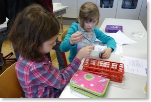 Heute ging es in die Sybilla- Egen Schule. Dort waren 12 Stationen für uns aufgebaut und wir durften viele Versuche durchführen. Dabei halfen uns Schüler der 11. Klasse. So konnten wir am Schluss - Farbstoff aus Rotkohl gewinnen - Apfeleis und Salz herstellen - Säure neutralisieren - Autos nur mit Hilfe von Wasser fahren lassen .... und noch vieles mehr. Später führte Frau Rübenstrunk noch einige Experimente durch. Dort knallte und krachte es ziemlich. Außerdem ließ sie Gummibärchen brummen. Wir waren alle begeistert!