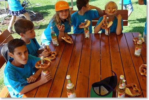 Jeder Schüler bekam ein tolles T-Shirt überreicht. zwei verschiedene Lesungen Bildung für alle! Besonders bei Kindern ist es wichtig, Grundlagen für die Zukunft zu schaffen. Dazu dient der Kinderlesetag für Kinder der 4. Klassen im Landkreis. Die Veranstaltung dient als Auftakt für den Kinderlese-Club in den Sommerferien in der Stadt-Bücherei. (Organisiert vom Round Table Schwäbisch Hall) Die wohlverdiente Stärkung in der Pause! Auch genügend Getränke standen kostenlos bereit. Vielen Dank! Wir sind die Weltmeister!