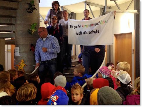 Das aktuelle Dezember 2012-Motto: "Ich gehe langsam und leise durch die Schule."